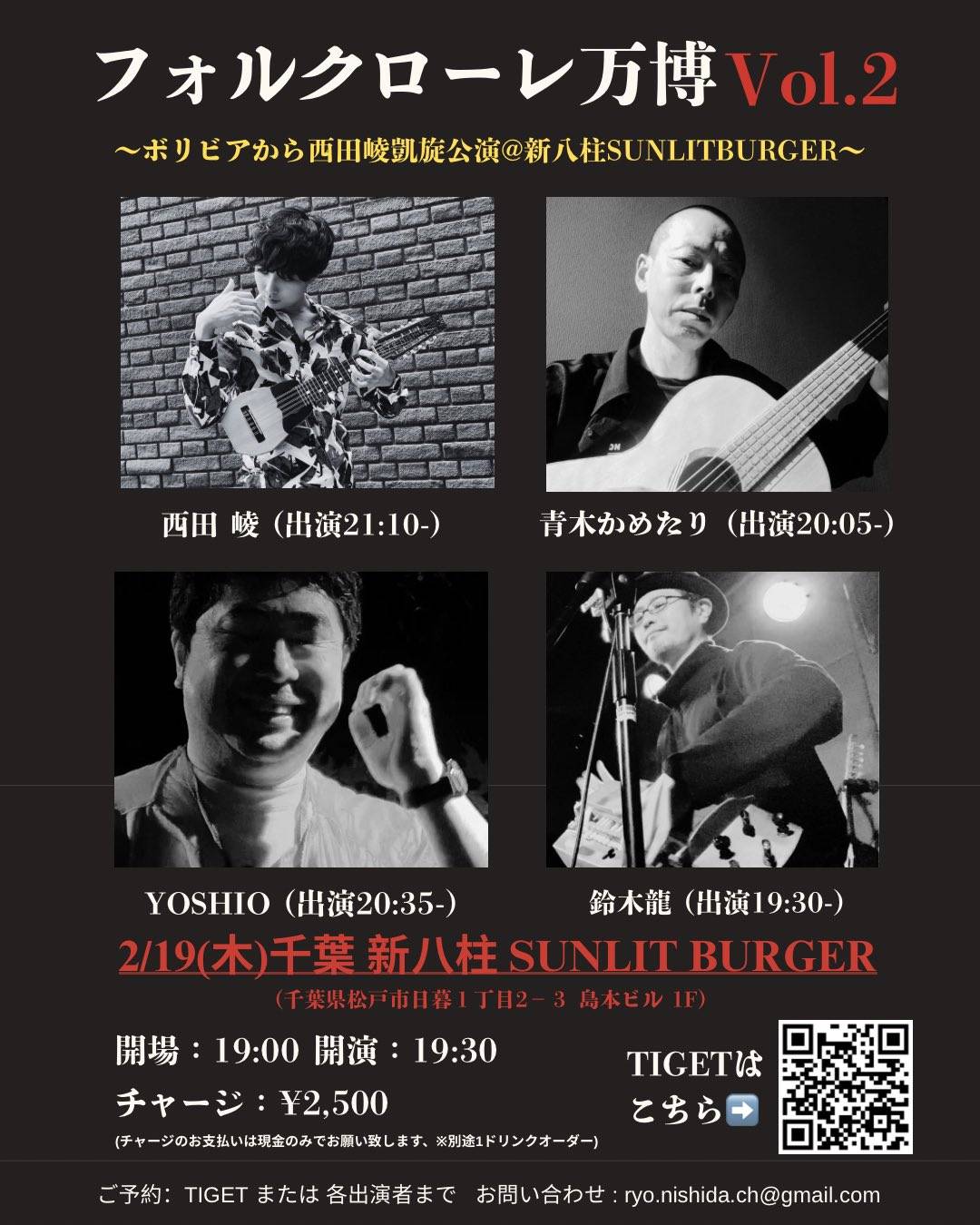 - 2/15(日)八柱 SUNLIT BURGER(千葉県): YOSHIO with Radical Andes Connection